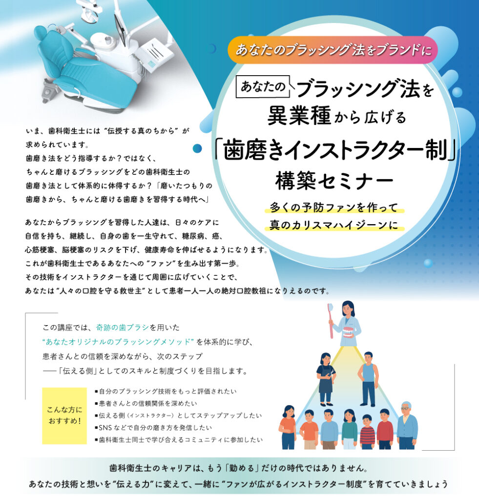 | セミナープログラム | あなたのオリジナルブラッシング法を広げるインストラクター制構築セミナー |